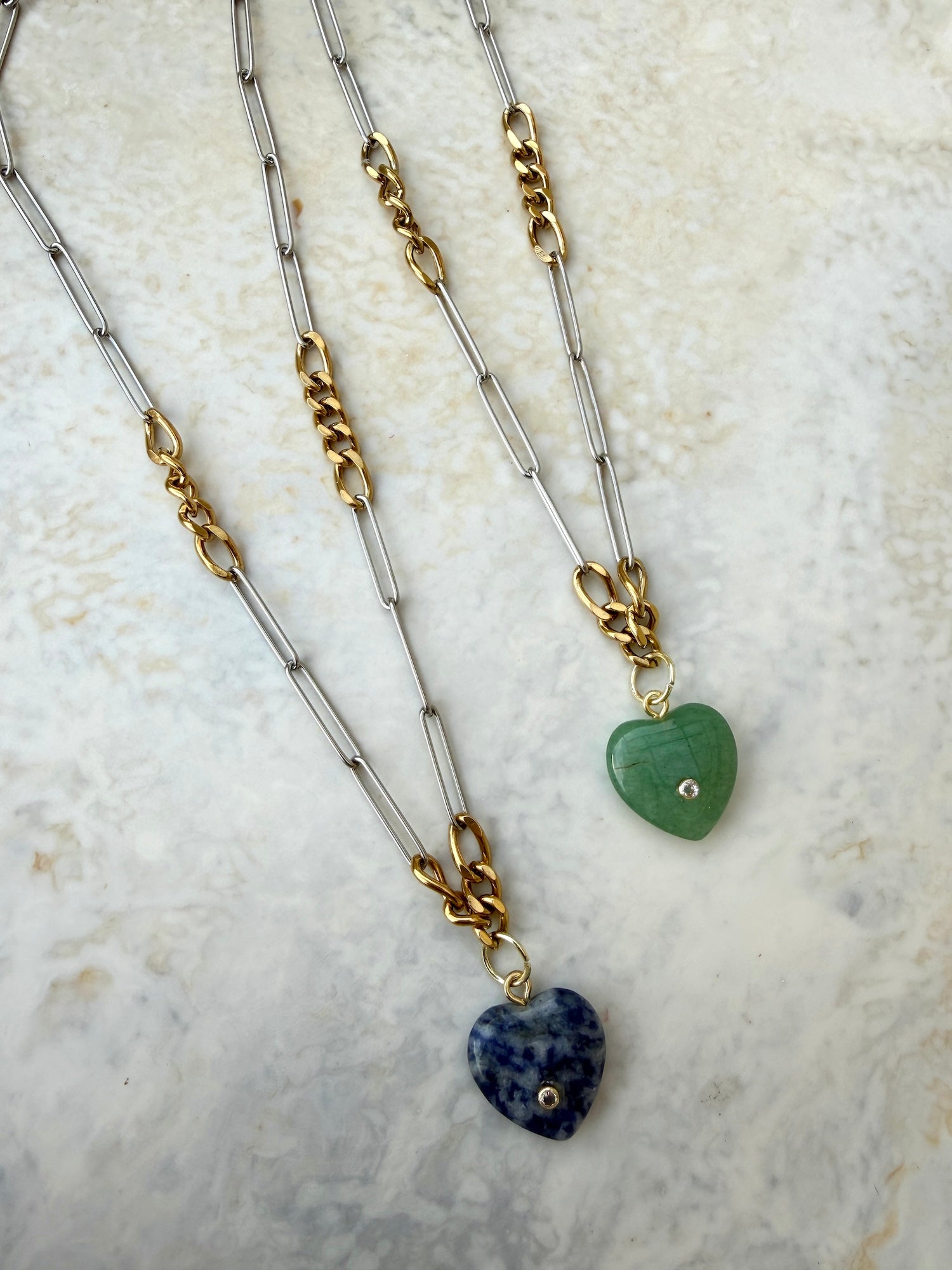 Soft and romantic, the Rosé Necklace features a stone quartz agate heart pendant adorned with a single diamanté.