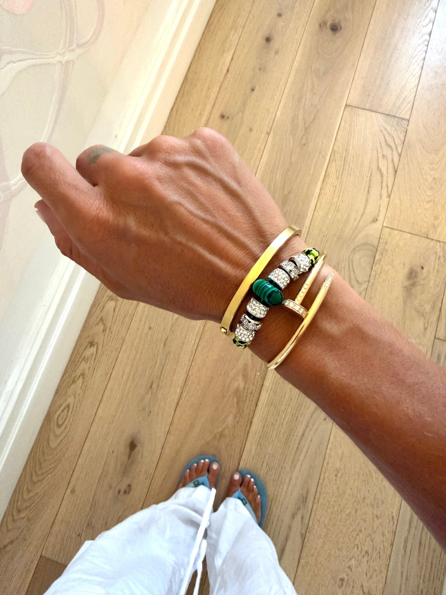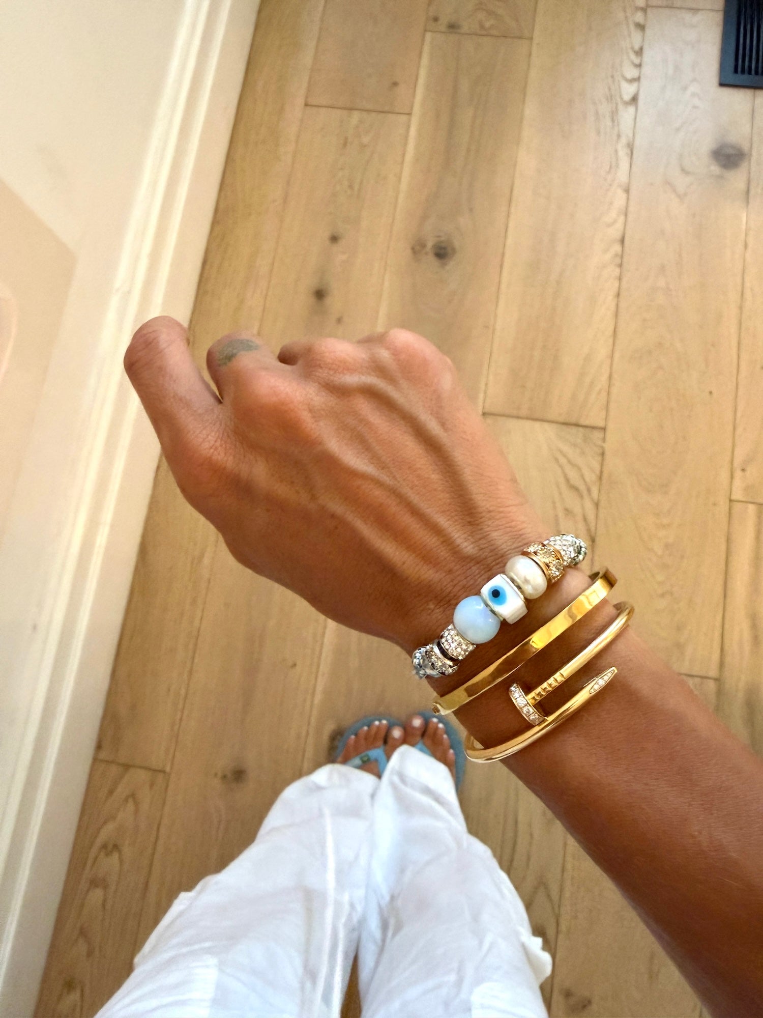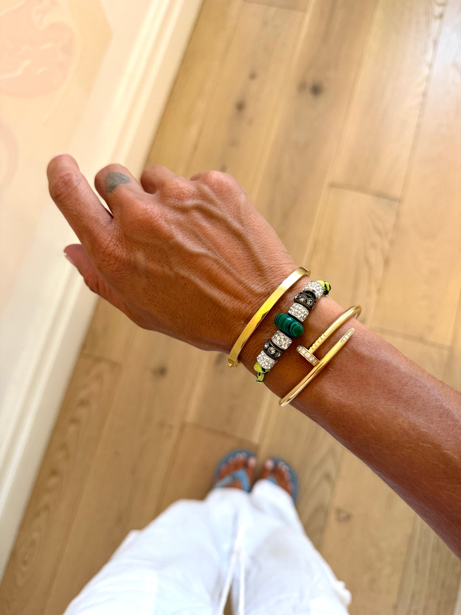 Wear it solo for a refined pop of shine, or layer it into your arm stack for that signature Palm & Pearl look.